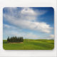Mousepad with a group of cypress trees in a landscape with green hills and yellow flowers under beautiful white clouds near Torrenieri in the Val d'Orcia (Orcia valley) in Tuscany, Italy.