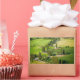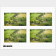 Rectangular photo sticker with a zigzag winding, cypress tree lined road through the green fields in Monticchiello, Tuscany in Italy.