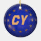 Bring a lot more holiday cheer to your tree with a custom ceramic ornament This Cyprus Christmas ornament is a great way to remember a trip to Europe or one’s heritage. The ornament is made of white porcelain. One side has a large CY on the E.U. flag. On the opposite is the word C above the E.U. flag and the E.U. flag. The ornament can be easily customised too: sizes, styles, colours, images, personal messages, text, etc. A strand of gold thread makes it easy to hang this fantastic keepsake.