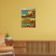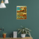 The beautiful green and blue Mediterranean Ocean of Cyprus with craggy rocks breaking the spray makes this vintage travel design a dreamer's paradise.