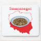 Beautiful Poland Map with red and white flag overlay and a bowl of czarnina in the centre and Smacznego! above the map. Great gift for anyone with Polish roots.