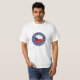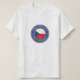 The national flag of the Czech Republic is infused into a circle shape which in itself, is decorated in the flag colours. Aside from the flag, there is a map outline of the country plus the coat of arms.