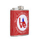 Hip flask with the word LOVE in red letters with a heart shaped flag of the Czech Republic for the O. The word LOVE is featured in red letters inside a white, fractal circle of squiggly squares. The circle sits on a red, fractal background, also, of squiggly squares. Perfect for Valentine's Day or any special time.