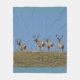 Mule Deer Bucks in Velvet Sky Lined Fleece Blanket. Mule deer bucks in velvet covered antlers crest a tall hill under a clear blue sky on a warm spring morning.