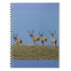 Mule Deer Bucks in Velvet Skylined Notebook. In this photograph four fine mule deer bucks in velvet crest a hill top under a beautiful blue sky on a perfect spring morning in south east Alberta, Canada.