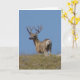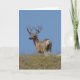 Mule Deer Buck in Velvet Card. Mule deer buck in velvet covered antlers crests a hill under a beautiful clear blue sky in a warm spring.