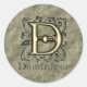 D - Embossed Vintage Monogram (Gold) Classic Round Sticker