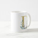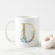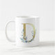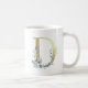 Letter D, gold initial with blue watercolour foliage initial mug. © Julie McIver