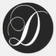 D monogram with a black background, white script initial and silver border. Perfect sticker for your wedding envelopes, gift bags, or other decor for your elegant wedding.