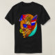 I give wanted to give this a 4 instead of a 5 because these Basic DARK T0shirts run unexpectedly SLIM or Narrow. Which is great if you do not have a potbelly, but I have a paunch. It isn't the shirt's fault that I've got a beer belly. The design and shirt itself is a quality cotton shirt. The color is more of a deep purple, but still a very pretty color. The Basic DARK T-shirts run a bit SLIMMER than the Basic Ts. The neck is a fraction narrower (or seems to be narrower) also. I'm a paunchy middle-aged woman and my neck is 12 inches (31cm) thick and the neckline fell about the same as in the photo of the man, and I had the desire to tug it a bit. So if you're a thick necked man or like loose shirts, be aware these are slimmer shirts. Once I get rid of my lockdown paunch it'll look great. The shirt washed well in cold water with no apparent bleeding. We don't have a dryer, so it hung dry. Did not shrink. Love the colors and the design. The design looks smaller on my shirt than it does on the model on-line. But still, it looks good on the shirt. The printing looks as it does on the model, just the size seems fractionally smaller. Washed garment in cold water, hung dry and design appeared unaffected.