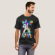 I give wanted to give this a 4 instead of a 5 because these Basic DARK T0shirts run unexpectedly SLIM or Narrow. Which is great if you do not have a potbelly, but I have a paunch. It isn't the shirt's fault that I've got a beer belly. The design and shirt itself is a quality cotton shirt. The color is more of a deep purple, but still a very pretty color. The Basic DARK T-shirts run a bit SLIMMER than the Basic Ts. The neck is a fraction narrower (or seems to be narrower) also. I'm a paunchy middle-aged woman and my neck is 12 inches (31cm) thick and the neckline fell about the same as in the photo of the man, and I had the desire to tug it a bit. So if you're a thick necked man or like loose shirts, be aware these are slimmer shirts. Once I get rid of my lockdown paunch it'll look great. The shirt washed well in cold water with no apparent bleeding. We don't have a dryer, so it hung dry. Did not shrink. Love the colors and the design. The design looks smaller on my shirt than it does on the model on-line. But still, it looks good on the shirt. The printing looks as it does on the model, just the size seems fractionally smaller. Washed garment in cold water, hung dry and design appeared unaffected.