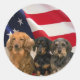 This patriotic Doxie threesome looks magnificent against the United States flag. Dachshunds are one of the most popular breeds in the United States and looking at these three it is easy to see WHY! They are adorable, loving, smart and the perfect size for sitting on laps. A fabulous gift for you or anyone you know who loves Dachshunds.