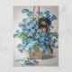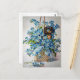 This is a great quality postcard. Just as sweet as I expected.A dachshund in a basket of flowers can never be forgotten. Nice print job. Beautiful shades of blues for the flowers. Fine details on the dachshund's face.