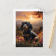Send a heartwarming message with this postcard featuring an enchanting image of a Dachshund at dusk. Set against a picturesque countryside sunset, the Dachshund sits amidst a field of blooming wildflowers, with the warm golden light of the setting sun casting a magical glow across the landscape. The rolling hills and soft, vibrant colours of the evening sky create a peaceful yet captivating atmosphere, making this postcard perfect for Dachshund lovers. Whether sending a thoughtful message or sharing a beautiful moment, this Dachshund postcard brings a touch of serenity and canine charm. generativecontent