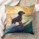 Dachshund Beach Surfing Painting Cushion