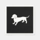 Simple elegant drawing of a cute Dachshund in white against a black background. The black background colour can be changed to the colour of your choice.