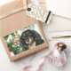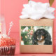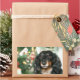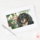 Black miniature dachshund on a vintage looking Christmas background holiday rectangular photo sticker