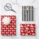 Festive holiday Dachshund dog silhouette patterns in red and white with a bold black and white stripe accent sheet to compliment the Wrapping Paper Set.