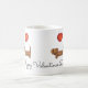 This little Wienerdog is having a red balloon wrapped around his body. A very cute gift idea, if you've someone in mind who loves dogs and maybe wienerdogs aka dachshunds in particular. This illustration makes everybody smile and makes a very thoughtful gift for someone you love. Since it is love themed this dachshund design makes a perfect valentines day gift.