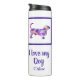 Dachshund / Daxie pet dog silhouette purple, pink, yellow and blue digital abstract pattern. This thermal tumbler is sure to put a smile on any dog lovers face. Plus, it's eco-friendly, so she can keep it for years to come. Change ‘I love my dog’/ ‘Name’ with any text you like on both sides of the bottle.