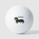This dachshund dog design golf ball is white and dimpled, with a diameter of at least 1.680 inches (42.67 mm) and a mass no more than 1.620 ounces (45.93 grams). The dimples on the surface are crucial for aerodynamics, reducing drag and allowing the ball to travel farther. Golf balls are designed with multiple layers to optimise distance, spin, and feel. Dachshund dog design golf ball