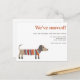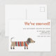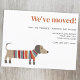 Featuring a fun and quirky Dachshund dog, perfect for dog lovers who want to share their exciting news with a touch of humour. The front features a whimsical illustration of a Dachshund wearing bright and playful striped knitwear. Whether you're moving across town or across the country, this announcement is a great way to keep your friends and family updated on your new address. Get ready to wag your tail in excitement! Original art by Nic Squirrell.