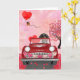 Dachshund Dog Driving Car with Hearts Valentine's Card
