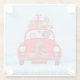 Dachshund Dog In Car With Santa Claus Glass Coaster