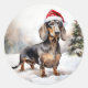 Dachshund Dog in Snow Christmas Classic Round Sticker