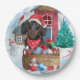 Dachshund Dog In snow Christmas Dog House Paper Plate