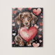 Dachshund Dog Pet Portrait Watercolor Valentine Jigsaw Puzzle