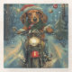 Dachshund Dog Riding Motorcycle Christmas Glass Coaster