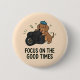 Capture the joy of photography with this delightful dachshund illustration. A friendly brown dachshund, sporting a stylish blue beret, is pictured with a professional camera, ready to snap a shot. The phrase 'Focus on the good times' adds a heartwarming touch to this playful design. It's an ideal design for photography enthusiasts and dog aficionados alike. This unique graphic celebrates the art of capturing moments and embracing a positive outlook on life.