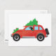 Dachshund driving a car w/ a Christmas tree on top Holiday Postcard