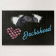 Hard to solve puzzle for those who love a true challenge. This is an almost solid black puzzle with part of a Dachshund’s face with a white background - all surrounded by darkness. Great for dog lovers and puzzle solving enthusiasts.
