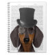 Dachshund, Formal Hound and Hat by FabFunky. Features a dapper dachshund wearing a fun top hat and monocle. | 191404D