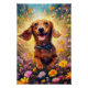 Dachshund Frolicking In A Field Of Colourful Flowe Poster