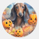 Dachshund Halloween With Pumpkins Scary Classic Round Sticker