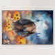 Dachshund Halloween With Pumpkins Scary Jigsaw Puzzle