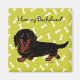 Unique and funny Dog Cartoon created by Naomi Ochiai from Japan. Cute and Funny Dachshund cartoon gift items for Dachshund fans!! Long haired black and tan Dachshund cartoon design. He/She has cute eyes! Bone pattern background. You can customise text and more!