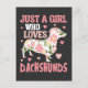 Dachshund Loving Girl Flower Dog Puppy Hearts Postcard