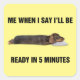 Dachshund Me When I Say I'll Be Ready In 5 Minutes Square Sticker