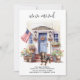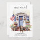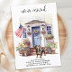 Announce your move to family and friends with our patriotic moving announcement featuring a beautiful watercolor painting of a Dachshund dog, modern house with a blue door and the American flag proudly displayed on the front porch. This announcement is perfect for dog lovers and anyone looking to announce their new address. With its red, white, and blue colour scheme, this announcement is a great way to show your love for the USA while sharing your exciting news. Let everyone know that "We've moved!" and invite them to come visit and meet your best friend in your new home. COPYRIGHT © 2023 Judy Burrows, Black Dog Art - All Rights Reserved. Dachshund Patriotic Personalised Pet Dog Moving Announcement
