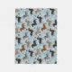 Dachshund Paws and Bones Pattern Blue Fleece Blanket