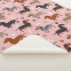 Dachshund Paws and Bones Pattern Pink Sherpa Blanket