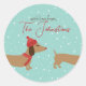 Elevate your holiday correspondence with our coordinating personalised dachshund envelope seals. These stickers are designed to perfectly complement our Warmest Wishes Christmas greeting card, featuring the same charming dachshund in a cosy scarf against a winter wonderland backdrop. With a touch of festive elegance, these seals add a personal touch to your mail. Ensure your season's greetings stand out with wiener dog joy this Christmas.
