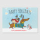 An adorable custom design featuring a dachshund, a pug, a bird and a little snowman.