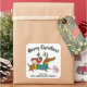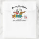 A cute and colourful holiday sticker featuring a dachshund, a pug dog, a bird and a snowman.