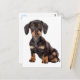 Brighten someone's day with handwritten note! This fun canine postcard features an image of black and brown Dachshund puppy dog highlighted against a crisp white background.