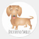 Dachshund Puppy Dog Smiles, Hello, Thinking of You Classic Round Sticker